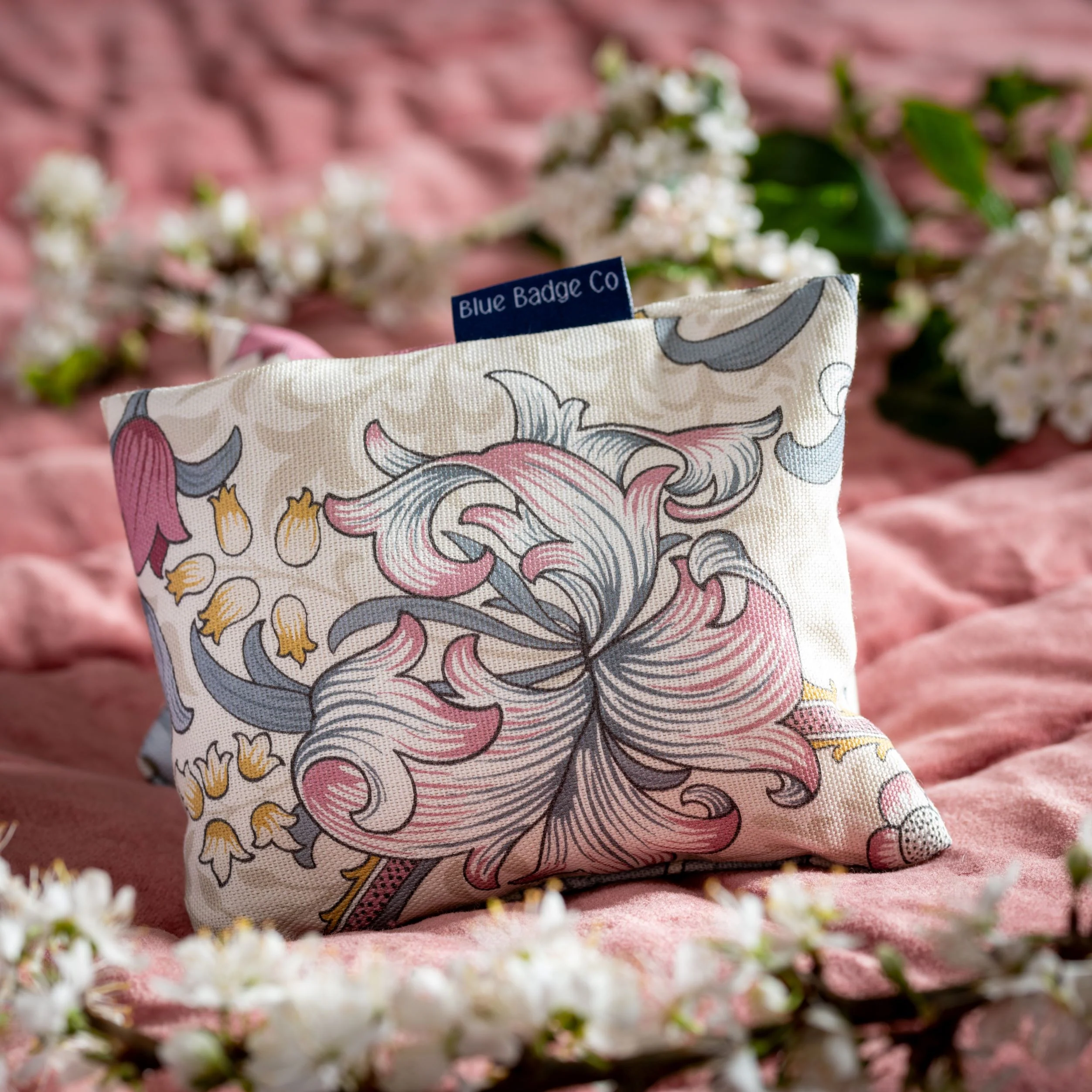 Lavender Wheat Warmer, Heated Wheat Bag in William Morris Golden Lily Plum