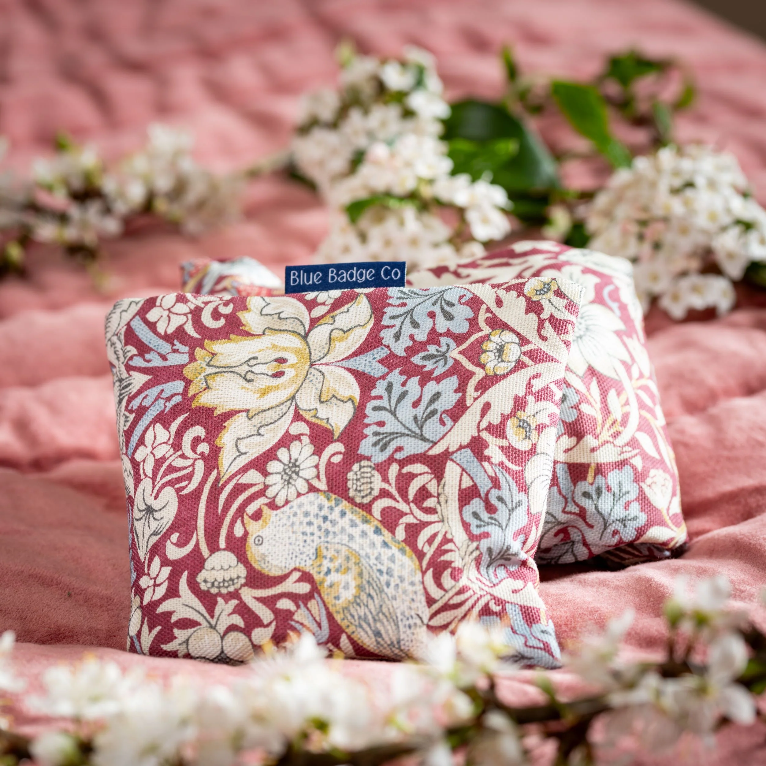 Lavender Wheat Warmer, Heated Wheat Bag in William Morris Strawberry Theif Plum